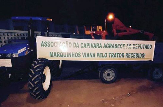 22 Ago 2017 // 07:11Cumprindo mais um compromisso assumido com a Associação de Capivara, em Caculé, o deputado Marquinho Viana (PSB), fez a entrega, no último sábado, 19, de um trator, equipamento que facilitará a produção de alimentos pelos produtores da agricultura familiar, e que já abastecem a cidade e municípios vizinhos. Prestigiaram a entrega do trator, Pedrão e João Filho, que posivelmente serão candidatos, respectivamente, a prefeito e a vice-prefeito, nas próximas eleições de 2018, além dos membros da Associação e grande número de moradores de Capivara.