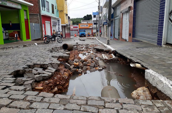 Choveu com muita intensidade na noite de terça-feira (12) e madrugada desta quarta (13), em Brumado, causando estragos nas ruas e avenidas da cidade, bem como nas estradas vicinais de boa parte da zona rural. O prefeito Eduardo Lima Vasconcelos visitou alguns pontos da cidade que foram danificados com a chuva, falou sobre os problemas recorrentes do município e que ainda não há estimativa dos recursos que serão empregados na recuperação. “O que vem ocorrendo neste período de chuva em Brumado é uma tragédia anunciada. Por exemplo, vocês lembram quando o Derba autorizou fazer a via de acesso ao IFBA? O projeto que chegou as nossas mãos pedia a colocação de duas manilhas de 60, fomos contra, pedimos para colocar uma galeria, não quiseram, o município bancou com recursos próprios a galeria para não acontecer, o que está acontecendo, de um modo geral em toda cidade, sendo necessária a construção de galerias para captar as águas das chuvas e evitar os problemas. Tem obras na cidade que acabam obstruindo algumas galerias. Em Brumado, chove pouco, se chovesse mais, a natureza estaria testando as obras constantemente, lugar que leva 10 anos para ver uma tromba d’água desta, o cara constrói, vai embora, vem outro mandatário, e isso é o que está acontecendo agora, estamos pagando por erros do passado”, disse o prefeito.