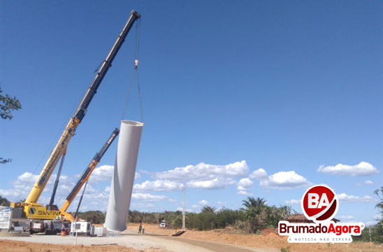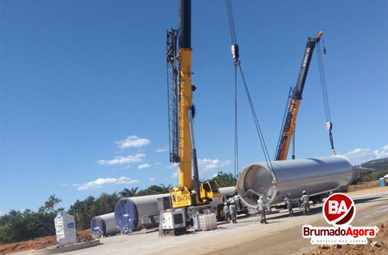 Na tarde desta terça-feira (10), a reportagem do Brumado Agora registrou as atividades de montagem da primeira torre eólica, situada no distrito de Cristalândia, em Brumado. Com o fim da obra, os parques eólicos de Cristalândia I e II terão capacidade instalada de 30 MW (15 turbinas) e 60 MW (30 turbinas), respectivamente. Serão 45 aerogeradores, que tem expectativa para entrarem em funcionamento em 2018.