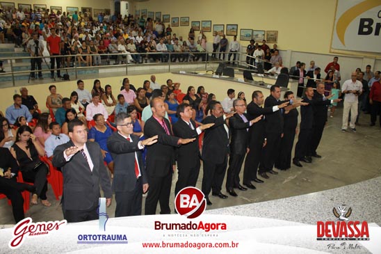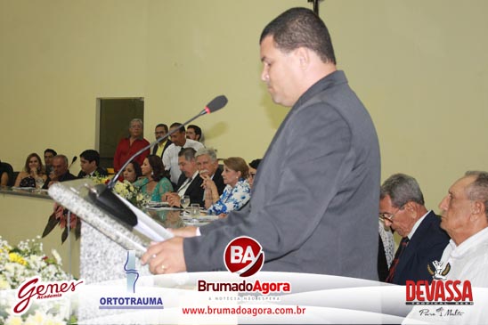 O prefeito de Brumado Eduardo Vasconcelos (PSB), durante a sessão solene de posse na Câmara de Vereadores no último domingo (1º), convocou os vereadores para que os dois poderes - Executivo e Legislativo - se mantenham harmônicos em prol do desenvolvimento da Capital do Minério. "Tenho esperança de trabalhar em harmonia com os demais poderes constituídos em prol da conjunção de forças e, nesse sentido, gostaria de me dirigir aos senhores vereadores eleitos. Dirijo-me, então, primeiramente, a Vossa Excelência, vereador Leonardo Quinteiro Vasconcelos, parabenizando-o e registrando a expectativa que tenho de que esta Casa Legislativa seja palco de significativas conquistas para o povo de Brumado sob seu comando. Cumprimento e parabenizo as vereadoras eleitas Ilka Nádia Souza Vilasboas Abreu e Edilsa Maria Teixeira do Espirito Santo, a Lia Teixeira. Acredito que a força da mulher, a sua sensibilidade e compromisso contribuirão para o avanço que deveremos ter durante a nossa jornada. Cumprimento os demais vereadores Eduardo Cunha Vasconcelos, o Dudu'; Wanderley Amorim da Silva, o Nem; Glaudson Dias Lima; Reinaldo de Almeida Brito, o Rey de Domingão; José Ribeiro Neves, José Carlos Marques Pessoa, o Zé Carlos de Jonas; Elias Pereira Gonçalves, o Elias Piau; José da Silva Santos, o Santinho; Luiz Carlos Caires da Silva, o Palito; e Edimilson Aguiar Silva, o Lek Cabelereiro".