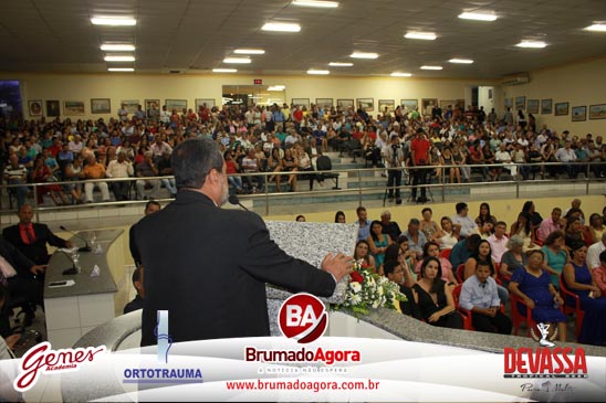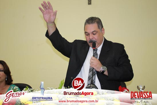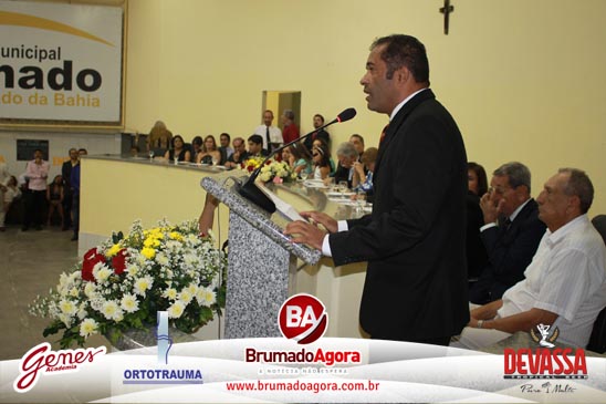 Em pronunciamento na sessão solene da posse dos eleitos que aconteceu no último domingo (01), na Câmara de Vereadores, em Brumado, o ex-prefeito do município, Aguiberto Lima Dias (PDT), durante a passagem simbólica do mandato para Eduardo Vasconcelos (PSB), falou do encerramento de sua gestão e desejou boa sorte ao novo gestor. "Nossa prioridade foi atender a secretaria de Saúde. Pegamos um período difícil durante a crise política e financeira, mesmo assim conseguimos terminar nossa gestão cumprindo os nossos compromissos assumidos: terminando as obras e deixando a saúde financeira do município bem. Enquanto tem prefeitos fugindo para não pagar os salários dos funcionários, nós pagamos todos até o dia 28 de dezembro de 2016. Quero desejar ao prefeito Eduardo muito sucesso, e sabemos que ele seguirá conduzindo tão bem os destinos da nossa Brumado", finalizou.