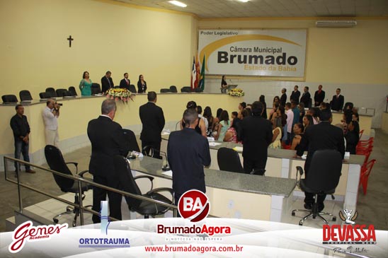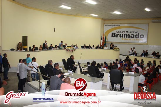 Os 13 vereadores eleitos em Brumado tomaram posse após prestarem juramento lido Léo Vasconcelos (PDT), o mais votado nas eleições. Após a cerimônia, foi escolhida a nova mesa diretora. Único candidato, Léo Vasconcelos (PDT) foi eleito como presidente da Câmara Municipal. Ele já ocupou o cargo por vários mandatos.