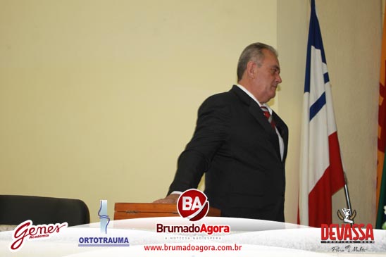 O presidente eleito da mesa diretora da Câmara de Vereadores de Brumado, Léo Vasconcelos (PDT), ao final da sessão solene de posse dos eleitos nas eleições de outubro de 2016, fez um discurso muito emocionado. "Diante da minha emoção neste ato de posse como vereador e eleito presidente da mesa diretora da Câmara de Vereadores de Brumado, eu queria dizer ao prefeito Eduardo, ao povo de Brumado e aos colegas vereadores, que não os decepcionarei, serei responsável com os recursos da Câmara de Vereadores. Terei, uma grande responsabilidade de retornar a presidência dessa casa e vou cuidar muito bem dessa casa que é a ressonância para a população de Brumado. Agradeço o voto de confiança de cada um de vocês e o voto que não tive. Tratarei todos igualitariamente, todos terão o meu respeito como presidente do legislativo municipal", finalizou o edil que foi eleito presidente da Câmara com 12 votos a favor e 1 contra.