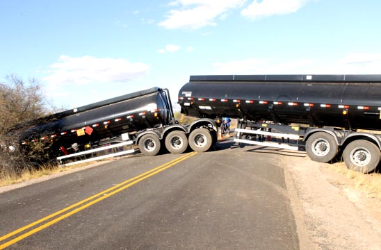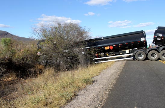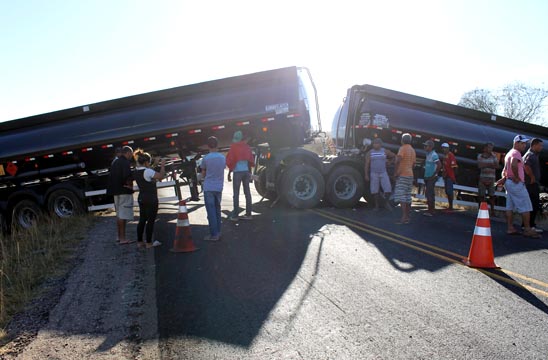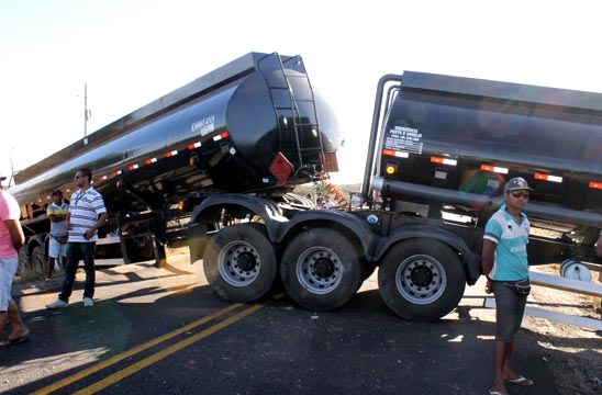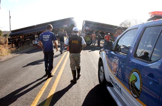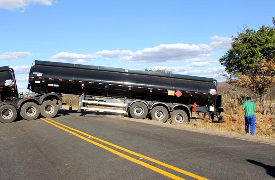 Uma carreta tanque Bitrem se envolveu em um acidente no trecho da BR-030 que liga os municípios de Caetité a Brumado, na tarde desta segunda-feira (08). O veículo não estava carregado e de acordo informações obtidas pelo Brumado Agora, no local do acidente, após passar pela linha férrea, próximo a Vila Presidente Vargas, o motorista perdeu o controle da direção, o que fez com que o veículo ficasse com os dois tanques atravessados na pista e batesse em um barranco. O motorista não teve ferimentos. A Polícia Rodoviária Estadual (PRE) esteve no local controlando o trânsito , já que os dois lados da via ficaram interditados. Um grande congestionamento se formou e alguns condutores estão optando por seguir viagem por atalhos em estradas vicinais. A pista só foi liberada por volta das 22 horas.