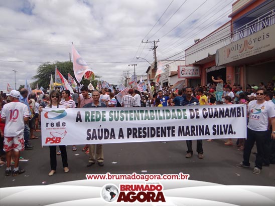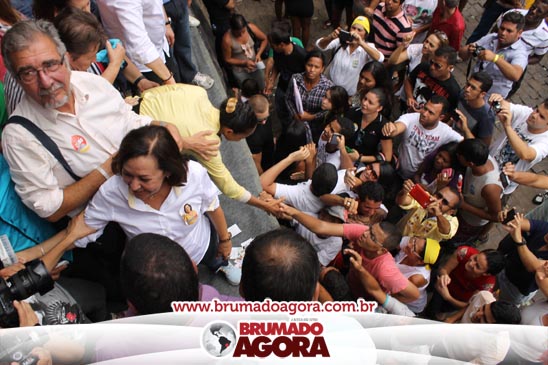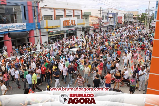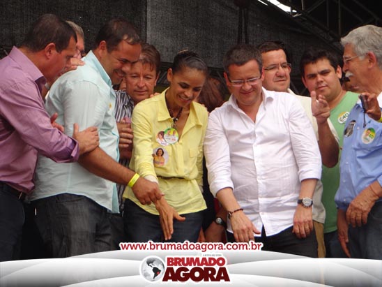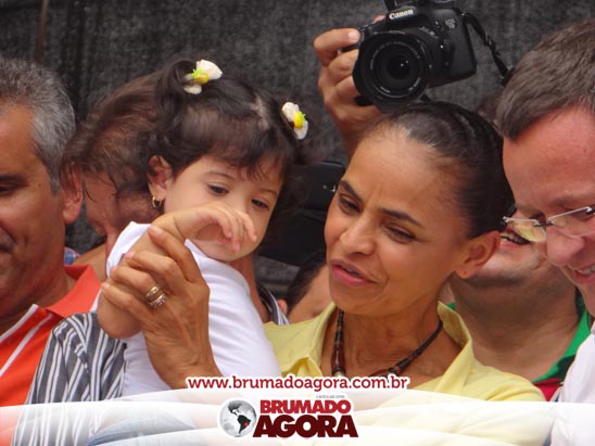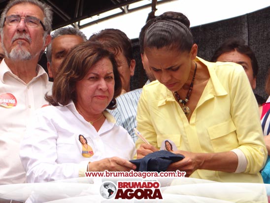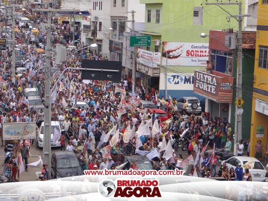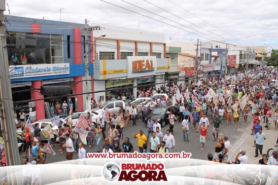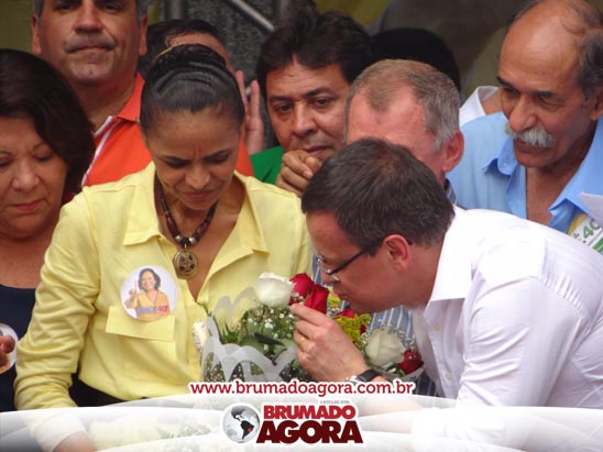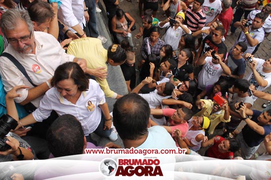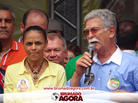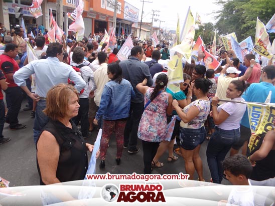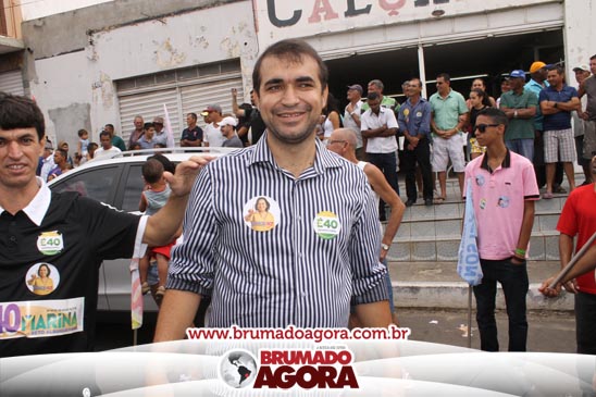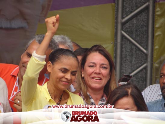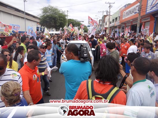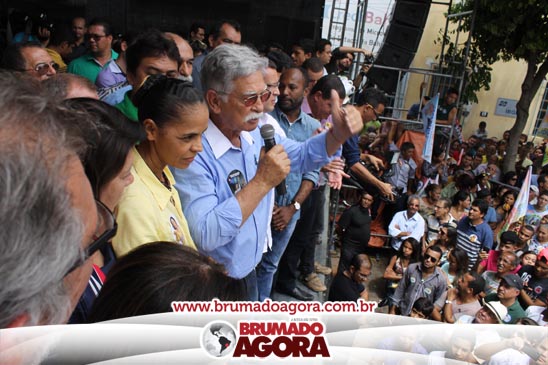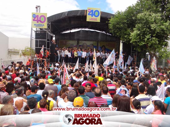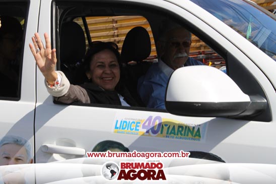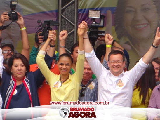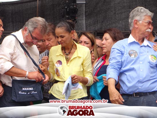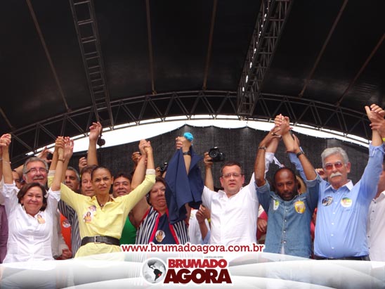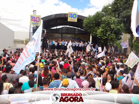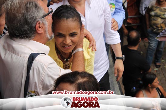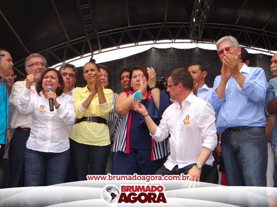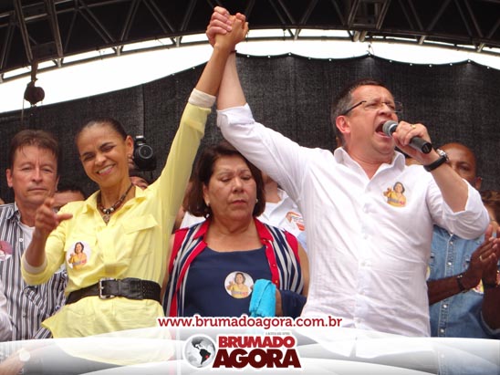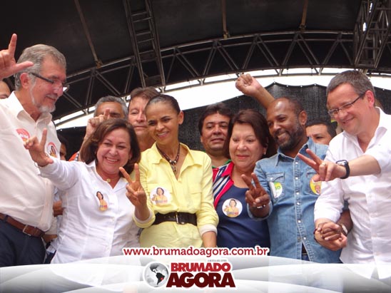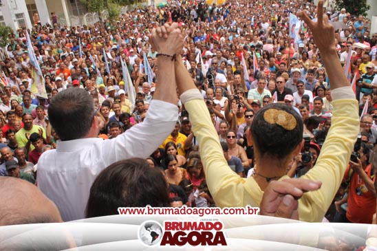 A presidenciável Marina Silva e o vice Beto Albuquerque, acompanhados de comitiva composta pela candidata ao Governo do estado da Bahia, Lídice da Mata, do vice Eduardo Lima Vasconcelos, da candidata ao senado Eliana Calmom e deputados federais e estaduais da coligação, estiveram em Brumado na manhã deste sábado (06), onde participaram de caminhada e comício. Após percorrer as principais avenidas da cidade, na Praça Armindo Azevedo, a candidata reuniu um grande número de militantes e correligionários, celebrado um momento histórico para a Capital do Minério que não recebe um candidato (a) a Presidente da República desde 1989, na ocasião, com a vinda de Ulisses Guimarães, candidato a presidente da república pelo PMDB.
