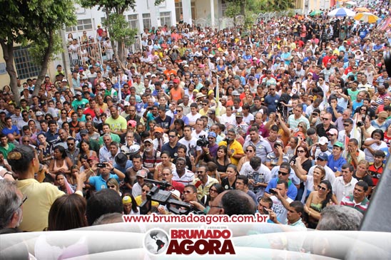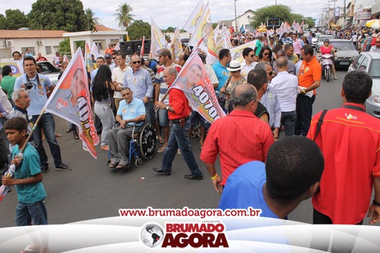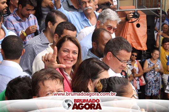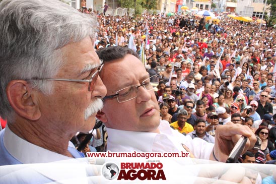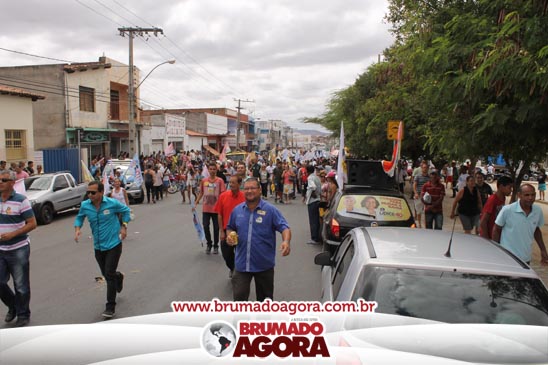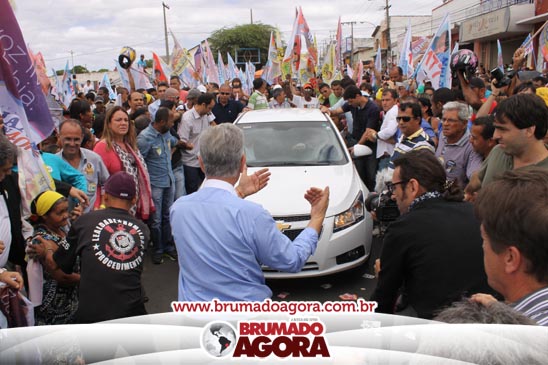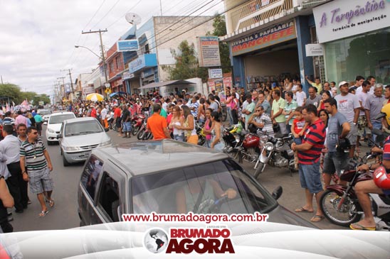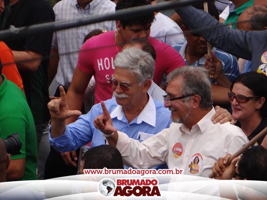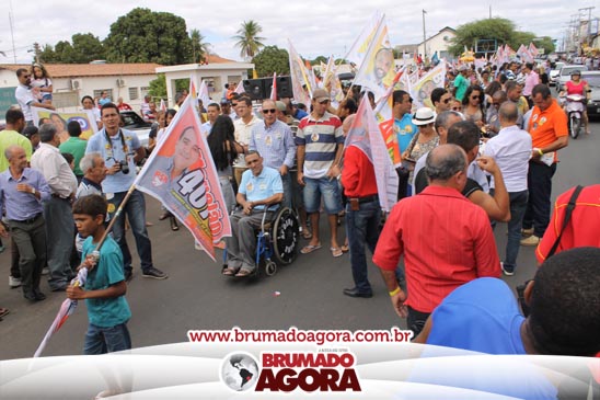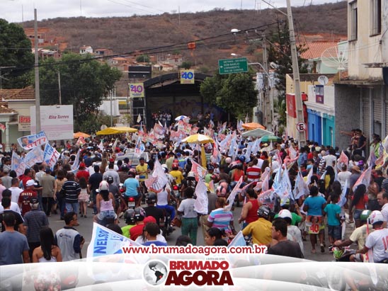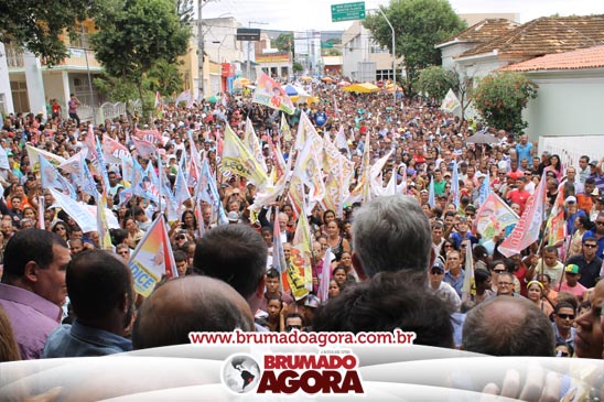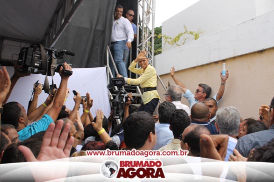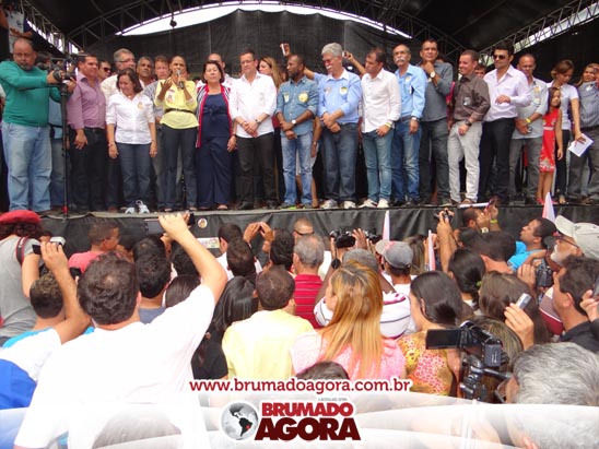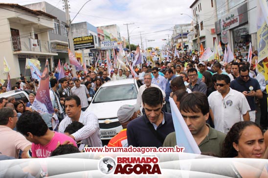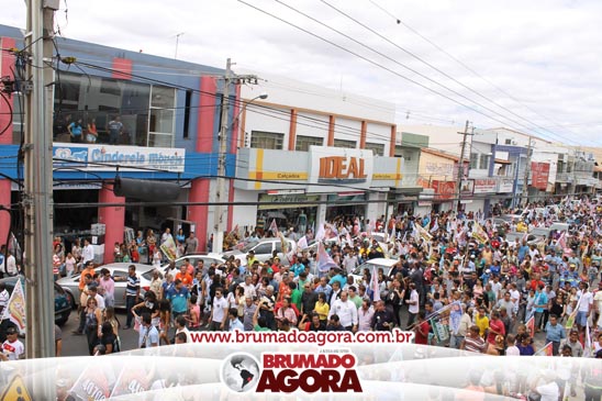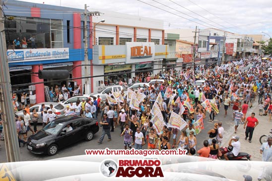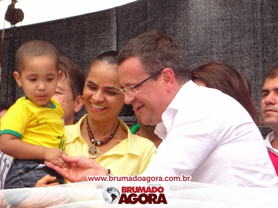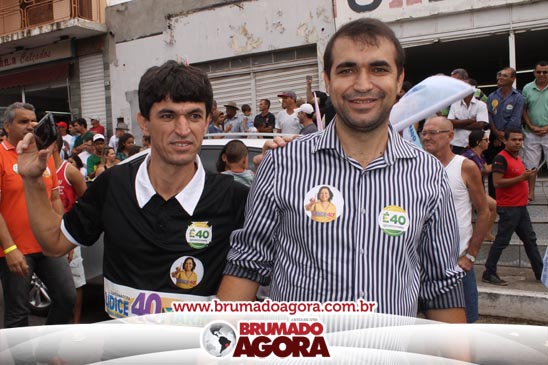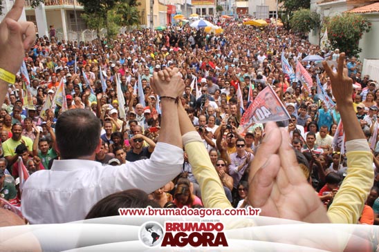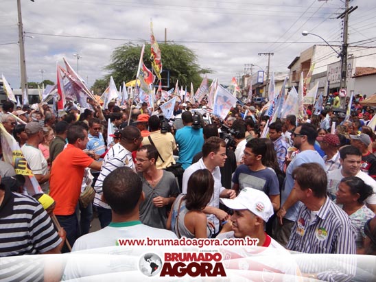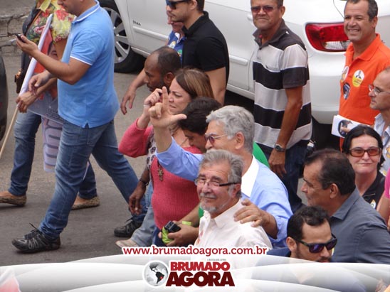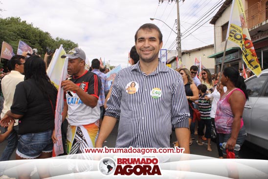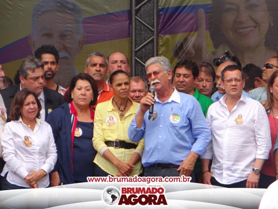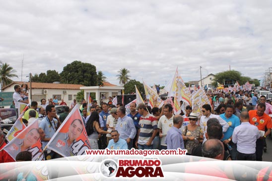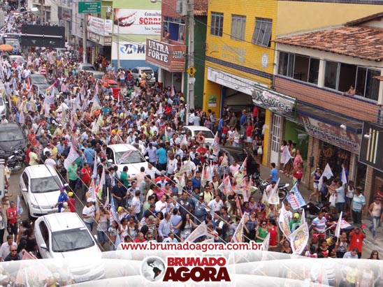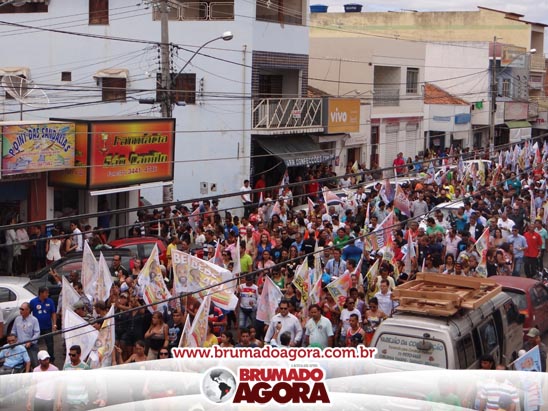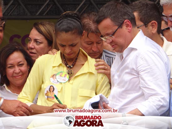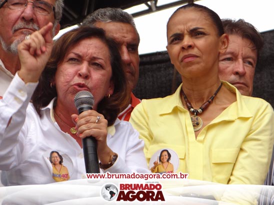 A presidenciável Marina Silva e o vice Beto Albuquerque, acompanhados de comitiva composta pela candidata ao Governo do estado da Bahia, Lídice da Mata, do vice Eduardo Lima Vasconcelos, da candidata ao senado Eliana Calmom e deputados federais e estaduais da coligação, estiveram em Brumado na manhã deste sábado (06), onde participaram de caminhada e comício. Após percorrer as principais avenidas da cidade, na Praça Armindo Azevedo, a candidata reuniu um grande número de militantes e correligionários, celebrado um momento histórico para a Capital do Minério que não recebe um candidato (a) a Presidente da República desde 1989, na ocasião, com a vinda de Ulisses Guimarães, candidato a presidente da república pelo PMDB.