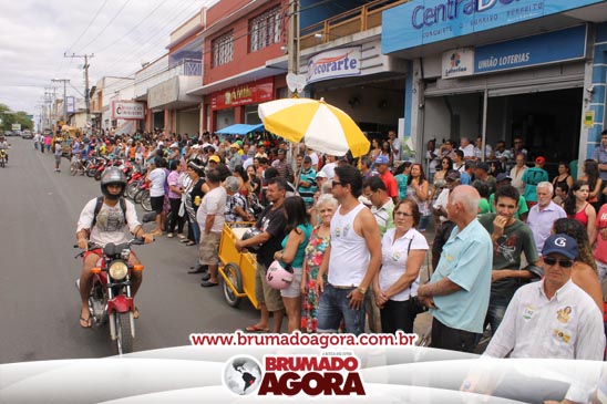 Sequencialmente desfilaram as escolas municipais acompanhadas das fanfarras, Academia de Karetê Tradicional a Ordem das Filhas de Jó, Colmeia Pérolas de Mel, Clube dos Pais, Ordem Demolay, Lojas Maçônicas Aliança Sertaneja e Manoel Carvalho, Os desbravadores, Direitos Humanos, FAMUB, InterCement, Escolinha de Futebol Ajax, Polícia Rodoviária Estadual (2ªCIPRV), Tiro de Guerra 06-024, Clube do Fusca, Clube do Jeep. Mais uma vez as Praças Armindo Azevedo e Capitão Francisco de Souza Meira ficaram completamente lotadas. No início da manhã, o frio e a garoa não impediram que os brumadenses fosse acompanhar os desfiles. A temperatura mudou e já no final do desfile houve muito calor. (CLIQUE AQUI E VEJA AS FOTOS)
