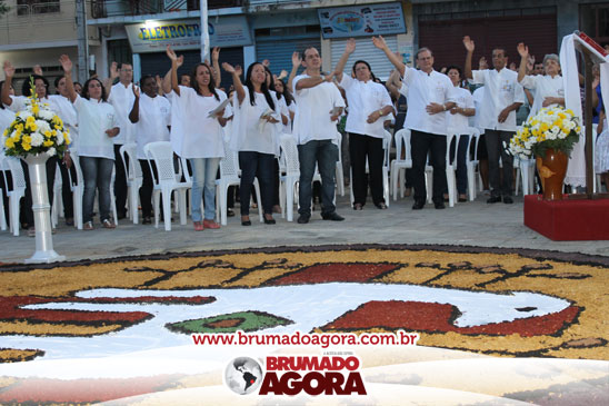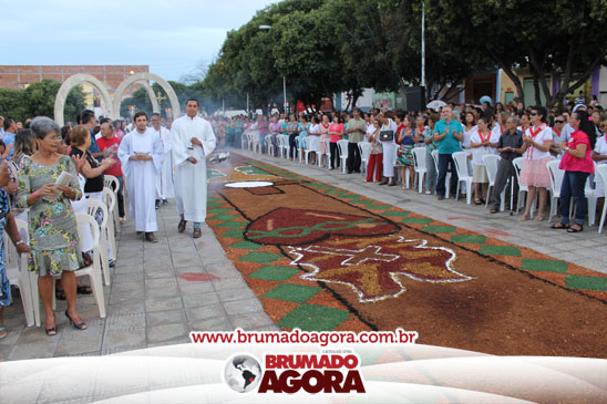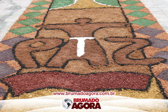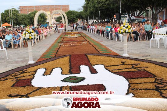 A celebração de Corpus Christi foi comemorada nesta quinta-feira (19) pela comunidade católica, Paróquia Bom Jesus, em Brumado. Durante o evento, toda a comunidade pôde prestigiar o tradicional tapete decorado com serragens, este produzido por fiéis da Igreja.