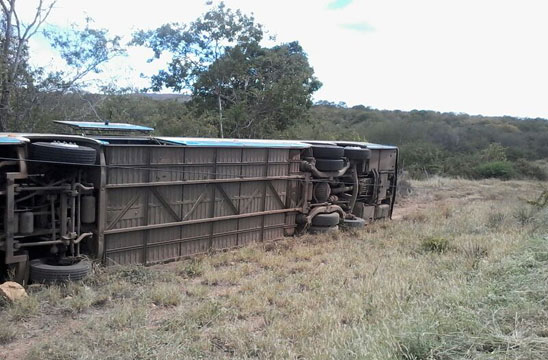 BR-030: Ônibus da Novo Horizonte tomba; ocupantes do veículo tiveram ferimentos leves