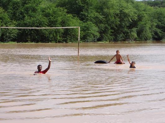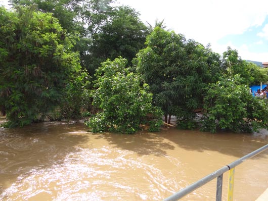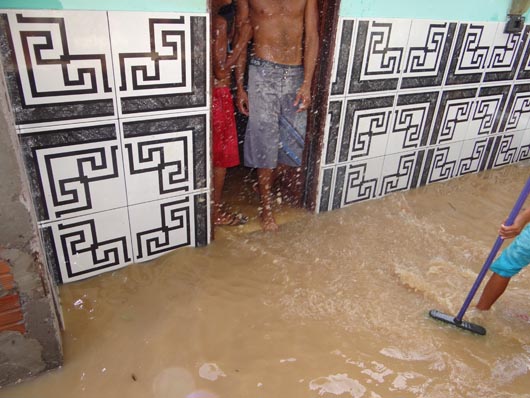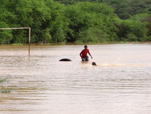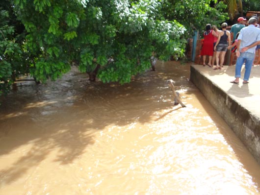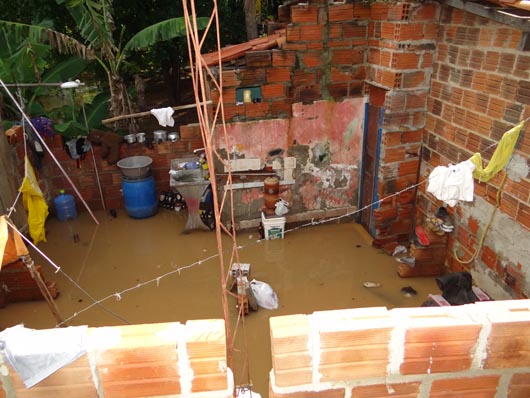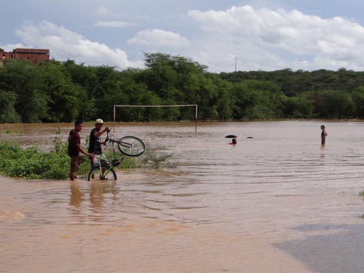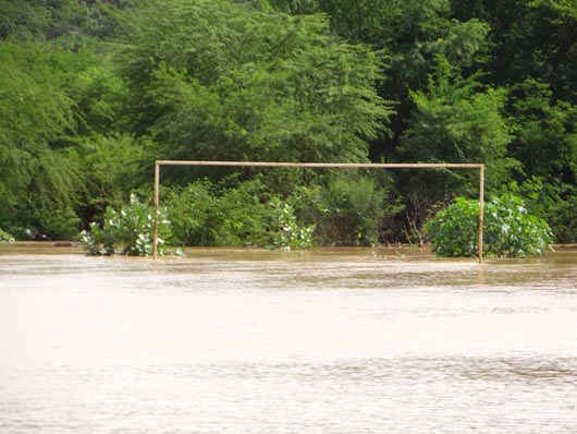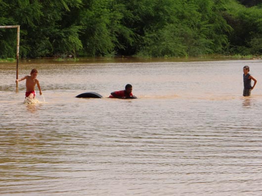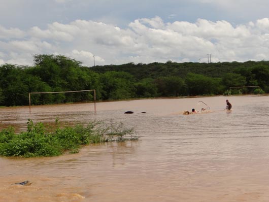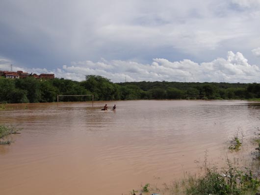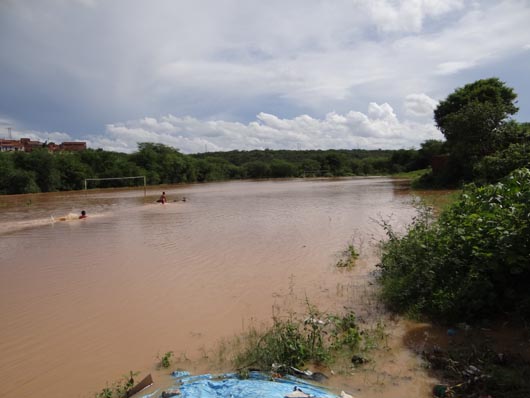 Já o campo de várzea do bairro ficou completamente inundado e somente é possível ver as traves. A água do rio já chegou perto das casas, invadiu parte da Travessa Presidente Costa Silva e uma casa teve que ser abandonada pelo proprietário. Os moradores ribeirinhos estão em estado de alerta, pois o volume de água no rio aumenta a todo momento.