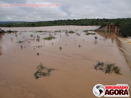 A Antiga ponte da comunidade de Riachão na fronteira entre os municípios de Brumado e Aracatu, no Sudoeste da Bahia, nas margens da BA-262, ficou completamente submersa na última terça-feira, 24, devido ao grande volume de água que corre no rio Riachão. Uma casa ficou submersa devido a grande volume de água na localidade.