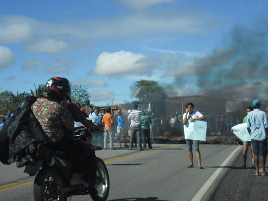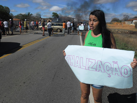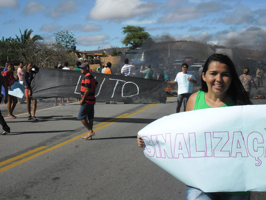 Após o acidente que vitimou uma idosa de 77 anos, na noite dessa quarta-feira (23), moradores da Comunidade da Jiboia interditaram a BA-262. A ação acontece desde a manhã desta quinta-feira (24) e a manifestação foi motivada pelos inúmeros acidentes que tem ocorrido na localidade, muitos deles com vítimas fatais. Dentre as reivindicações dos populares estão à construção de redutores de velocidade, sinalização da pista e medidas mais enérgicas das autoridades quanto aos acidentes. A manifestação é pacífica e está sendo permitida a passagem de carros oficias e ambulâncias no trecho interditado.