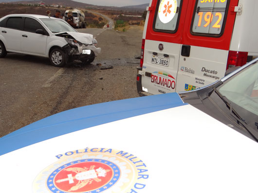 Na manhã desta sexta-feira (18), um acidente foi registrado no cruzamento do Bairro Esconso com o Anel Viário da BR-030. Um veículo Ford Fiesta, ocupado por duas pessoas, seguia na rodovia sentido Vitória da Conquista, quando um veículo Parati, ao tentar cruzar a pista, foi atingido pelo veículo que seguia o curso, mesmo com a tentativa do motorista de realizar uma frenagem de emergência. De acordo informações coletadas pela reportagem do Brumado Agora no local do acidente, o motorista da Parati não usava o cinto de segurança no momento da colisão, sendo arremessado para o para-brisas do automóvel, devido ao impacto. Uma mulher que ocupava o Ford Fiesta sofreu pequenos ferimentos. Os feridos foram socorridos pelo Serviço de Atendimento Móvel de Urgência (Samu 192) e encaminhados para o Hospital Professor Magaçhães Neto (HPMN). A Polícia Militar controlou o trânsito.