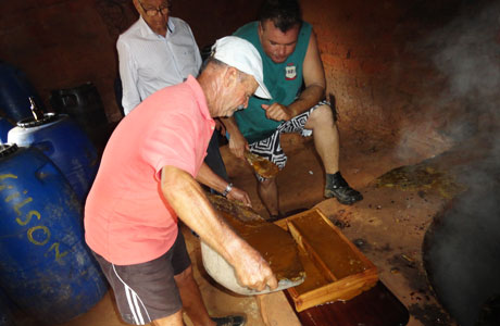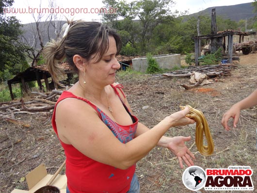 O Brumado Agora foi convidado para conhecer e participar da fabricação e produção artesanal de rapadura, no último dia 07, na Fazenda Boa Sentença, no município de Rio de Contas. A equipe se dirigiu ao local a convite do proprietário José Tadeu da Assunção, que herdou dos seus antepassados, há mais de um século, a cultura de produção do doce, e participou de todo o processo: moer a cana, armazenar e ferver até virar garapa, para depois tirar a ‘puxa’ e por fim a rapadura, atividade esta muito demorada, pois leva em média de 12 a14 horas no fogo, com temperatura regulada. O Brumado Agora agradece o convite de: Marzinho, Landinho, Silvana, Sinara e Emerson, filhos de José Tadeu, aos netos Paulo, Tadeu, Vinicius, Maria Clara, Tamilas, Tainar, Anderson, Junior e Helder aos amigos Marleide, Neide, Argentino e Regis, bem como a receptividade de dona Guiomar Cotrim, com um saboroso almoço.