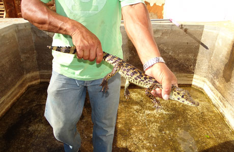 Um fato inusitado aconteceu na Fazenda Corcunda, localizada próximo ao Distrito de Itaquaraí, em Brumado. Na ultima segunda-feira (26), um filhote de Jacaré foi encontrado no galinheiro da fazenda de propriedade da senhora Idália Freire Pereira. O animal estava no galinheiro e, no momento em que encontrou o animal, a senhora chamou o vaqueiro da fazenda, Geraldo dos Santos, que o prendeu e colocou em uma caixa com água. "Eu estava dando comida as galinhas e vi ele ditadinho, pensei que era um Teiú, com isso não dei assunto, entrei para a casa. Quando o vaqueiro chegou, eu disse a ele ali tem um Teiú, quando ele foi verificar percebeu que era um Jacaré. Aí me perguntei: de onde veio esse Jacaré? Ele disse que realmente era um Jacaré", disse Dona Idália em entrevista ao Brumado Agora. Ela ainda citou que quer “que o Ibama leve ele para um lugar onde ele possa ser criado com as condições naturais, porque ele aqui é novidade, porque ninguém conhece".