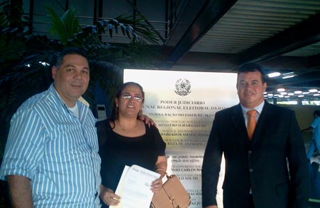 Vereadora Liu Vasconcelos, seu esposo Leo Vasconcelos e o Deputado Marquinho Viana na sede do TER-BA.