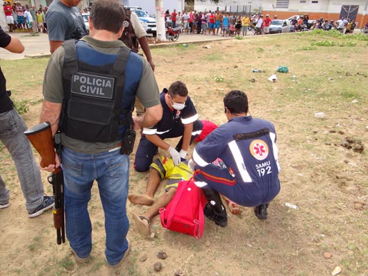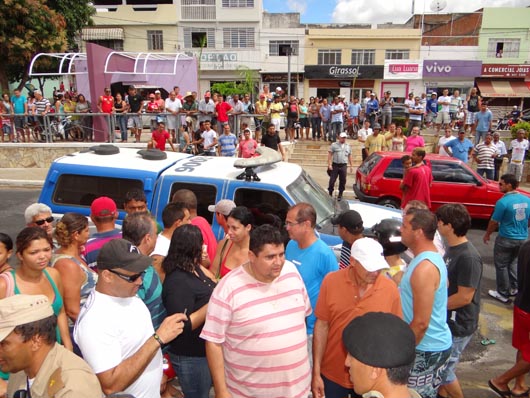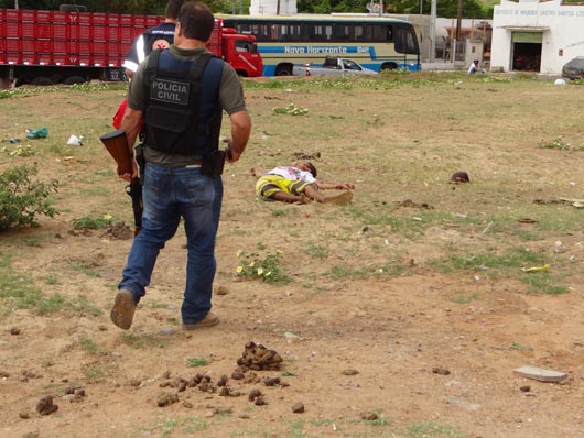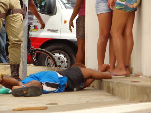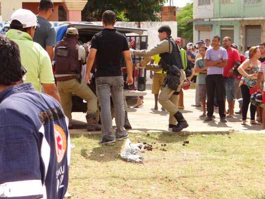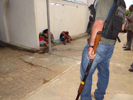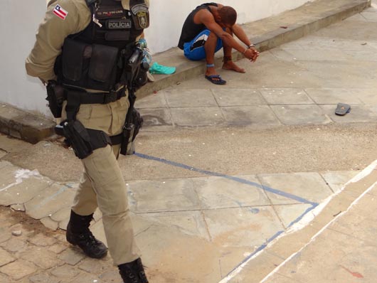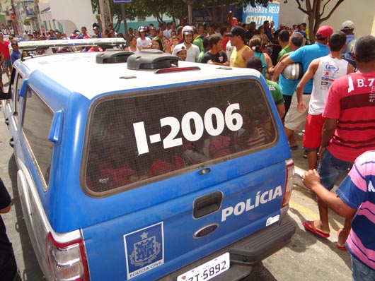 Na manhã deste sábado (17), quatro bandidos, duas mulheres e dois rapazes, tentaram assaltar uma loja de relógios e jóias, localizada no centro de Brumado. A ação criminosa foi frustrada, pois as Polícias Militar e Civil receberam antecipadamente a informação, através de denúncia anônima, que os bandidos iriam assaltar a loja na manhã deste sábado. Desta feita, o setor de inteligência passou a realizar investigações e, por três dias, policiais ficaram a paisana no centro da cidade, nas proximidades da loja. Os assaltantes agiram efetuando dois disparos dentro da loja, ferindo o proprietário e o seu filho, os quais foram atendidos pelo Serviço de Atendimento Móvel de Urgência (Samu 192) e ecaminhados para o Hospital Professor Magalhães Neto (HMN). Em seguida, as Polícias agiram e teve início uma troca de tiros com os criminosos. Um dos bandidos foi baleado no fundo do Mercado de Artes, localizado na Praça Armindo Azevedo, não resistiu aos ferimentos e morreu no local, antes mesmo da chegada do Samu 192. Três integrantes da quadrilha foram presos e encaminhados para a delegacia local. Com eles foram encontrados uma moto roubada e dois revólveres. Ao final da operação, os policiais foram bastante aplaudidos pela população que lotou a Praça Armindo Azevedo. Os nomes dos assaltantes ainda não foram divulgados. O corpo do assaltante foi encaminhado para o IML de Brumado.