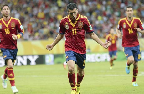 Pedro corre para festejar: Espanha passa sem problemas pelo Uruguai (Foto: EFE)