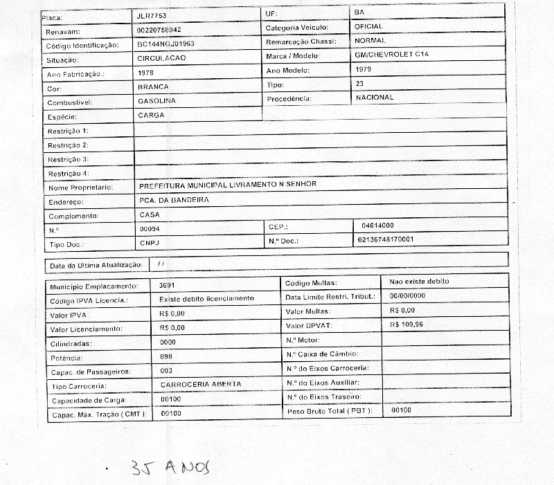 O ex-prefeito de Livramento de Nossa Senhora, no sudoeste baiano, Carlos Souto Batista (PSD), o Carlão, em nota enviada ao Brumado Agora, prestou esclarecimentos, a cerca da matéria veiculada em nosso Blog, em que a atual administração Livramento, acusa o ex-gestor de sucatar a parte da frota de veículos. Confira a Nota: “Entendemos que este prestigioso veículo foi induzido ao erro veiculando fotos de veículos sucateados, que por informação constavam no blog de outro veiculo de informação. Os referidos veículos foram colocados como se fosse a frota sucateada da administração passada do ex-prefeito Carlão. No sentido de esclarecer a verdade e confiando que o espaço democrático deste blog nos será assegurado venho de publico esclarecer que: Um dos veículos, placa policial JKZ-4215, ano de fabricação 1997, pertence à secretaria de Saúde do Estado da Bahia, portanto com 16 anos de uso, o que para uma ambulância é muito tempo e mesmo assim funcionou no governo Carlão. O Ford cargo placa JMU-3761 compactador de lixo funcionou até 31/12/2012. Bem como o Ford cargo caçamba JMU-3751 ambos com ano de fabricação de 2003. Uma GM Chevrolet c14 branca ano de fabricação 1978, portanto com 35 anos, até uns dias atrás estava funcionando. Para que a verdade se estabeleça para os leitores deste prestigiado veiculo de comunicação, estamos enviando documentos de todos os veículos citados, constando placa policial e ano de fabricação. Quanto a Ranger do gabinete na transição de governo passamos documento da oficina Santo Expedito de Vitoria da Conquista que não se encontrou peça de reposição durante mais de 30 dias, e, nos não negamos essa informação. O Sr. Nilson Dantas assinou o recebimento deste veículo, que ressalte-se, passados quase 4 meses nada foi feito. Sempre gratos pela atenção e na certeza da publicação da nossa modesta e verdadeira manifestação. Agradecemos com um forte abraço” finalizou Carlos Roberto Souto Batista ex-prefeito ‘Carlão’. Documentação de veículos I e II. Clique aqui e veja a lista dos veículos antigos.