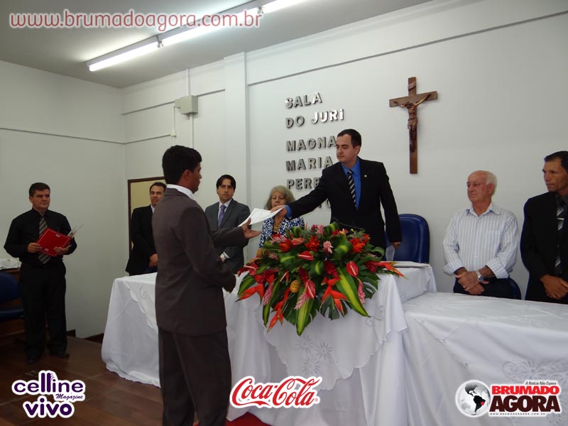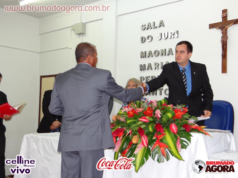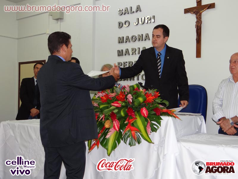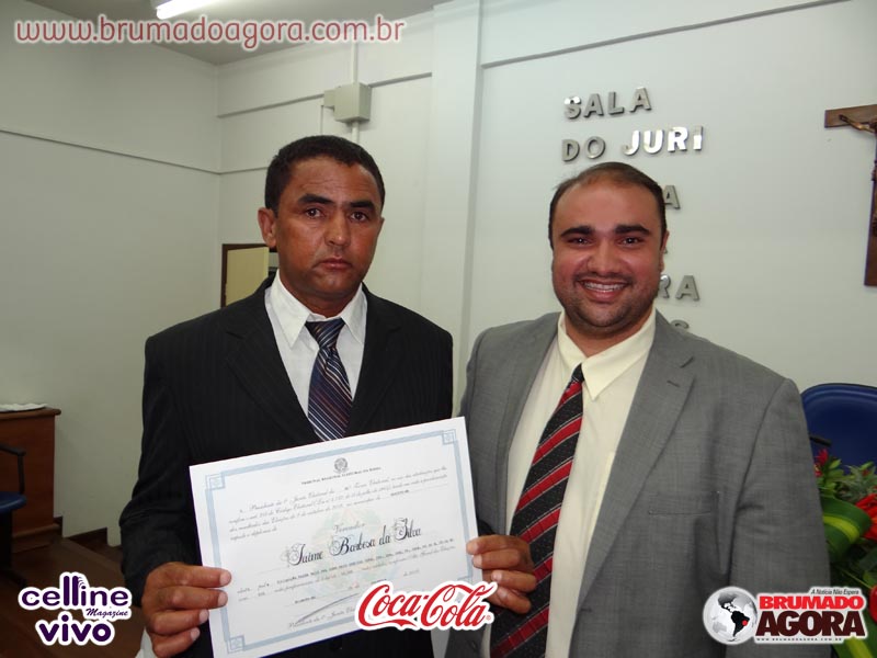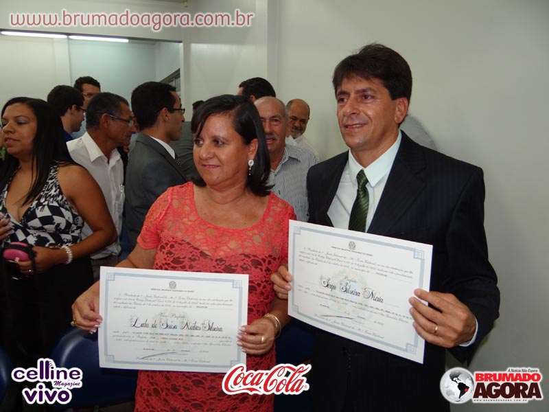 Sob a presidência do juiz eleitoral Genivaldo Alves Guimarães, que foi responsável pelo pleito eleitoral de Aracatu, foi realizada na tarde de quarta-feira, 19, a cerimônia de diplomação do prefeito eleito de Aracatu, Sérgio Maia, do PV, sua vice-prefeita Lêda Matias (PCdoB) e de todos os vereadores eleitos. A cerimônia de diplomação aconteceu na sede do Fórum Duarte Moniz, que contou com um público que saiu de Aracatu só para verem seus eleitos serem diplomados. “Agora a luta começa, a batalha não é fácil, eu sei que vou pegar um município praticamente acabado, mas tenho fé que vou superar todas as dificuldades. Vamos trabalhar pela saúde, educação. A população confiou em nosso nome, agora tenho que retribuir essa confiança, vou trabalhar igualitariamente pelo povo de nossa cidade”, falou ao Brumado Agora o prefeito Sérgio Maia.