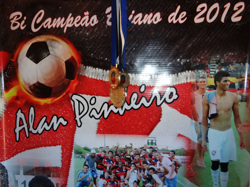 “A carreira está indo bem graças a Deus, estamos muito felizes por ele está conseguindo seus objetivos, a gente reza muito, pedimos sempre a Deus. Esse momento de Alan pra nós é muito importante, não só pra nós familiares como para toda Brumado que tem hoje um filho da cidade no futebol profissional”, expressaram emocionados os pais do jogador, Reginalda Lopes Pinheiro (Nega) [mãe] e Ateni Gomes Pinheiro (Téo) [pai]. Alan Pinheiro falou da felicidade pelo título e por estar se integrando ao profissional. “Conseguimos esse título importante e agora vou seguir minha carreira no profissional do Vitória. Estarei me apresentando dia 02 no Clube, estou com muita expectativa, e quero ser campeão baiano, mas para isso vou trabalhar muito para ser um dos titulares”. Alan foi campeão Baiano sub-20 em 2011 e 2012, e já tem vários títulos pela base da equipe. No momento em que nossa reportagem estava na casa de Alan, vários amigos e parente do Campo Seco I estavam presentes e vibrando com a conquista do jogador.
