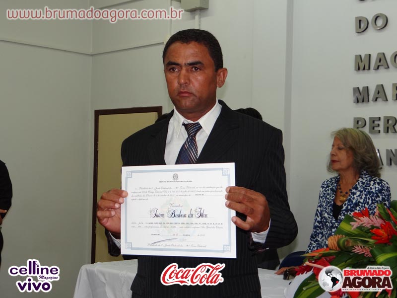 Os prefeitos e vice-prefeitos eleitos de Brumado, Aguiberto Lima Dias (PSL) e Cristina Gondin (PSDB); os eleitos em Aracatu: Sérgio Maia (PV) e Lêda Matias (PCdoB) e os eleitos em Malhada de Pedras: Valdecir Bezerra ‘Ceará’ (PT) e Paulo Cezar Reis (PRB), juntamente com os vereadores e suplentes, serão diplomados nessa quarta-feira, 19, no Fórum Duarte Muniz, em Brumado. As cerimônias de diplomação serão conduzidas pelo Juiz Eleitora da 90ª Zonal Eleitoral, Genivaldo Alves Guimarães. Confira os horários: às 15h, Diplomação dos eleitos em Malhada de Pedras; às 17h os eleitos em Aracatu e às 19h os eleitos em Brumado.