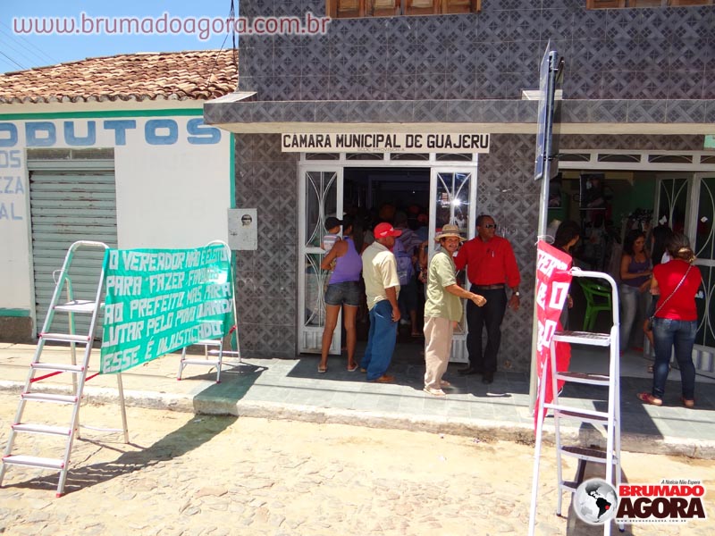 Em uma sessão histórica da Câmara de Vereadores de Guajeru, os vereadores votaram pelo afastamento do prefeito municipal, Jorge Ubiraja Marques de Souza (PP), na manhã dessa terça-feira, 13.O que culminou nesta ação foi uma denúncia feita pela Associação de Moradores de Guajerú , apresentando várias irregularidades do executivo. [Falta de pagamento da folha salarial dos servidores municipais, a cidade está sem coleta de lixo, o não pagamento do transportes escolar].