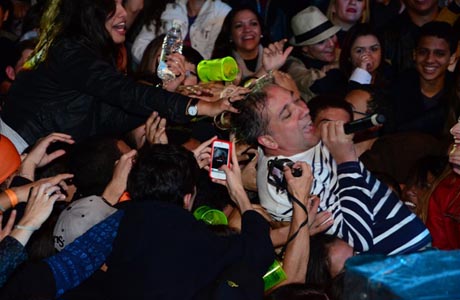 Bruno Gouveia se jogou literalmente para o público. (Foto: Laécio Lacerda)