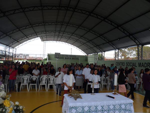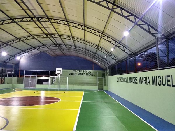 Foram inauguradas no último domingo (11), o ginásio poliesportivo e as novas instalações do Centro Social Madre Maria Miguel, em Aracatu. O evento teve início às 16h com a Celebração Eucarística onde toda a comunidade, os educandos, educadores e as Religiosas Missionárias Ir.Marlene, Irmã Maria José, Irmã Maíze e a Ir. Joseane se fez presente para este momento histórico pra nossa cidade. Foram feitas reformas em todo o Centro como pinturas, forros, iluminação, criação de nova estrutura no salão de eventos, almoxarifado, parquinho e a construção do tão sonhado ginásio poliesportivo com cobertura metálica e iluminação para atividades noturnas e marcação para diversos esportes. O Centro Social Madre Maria Miguel é uma instituição pertencente à Associação Educativa Cultural e Assistencial Nossa Senhora das Dores, desde o ano de 2004, atendendo diariamente 154 crianças, adolescentes e jovens no contra turno da escola. Sua Visão é: “Colaborar na formação de crianças e adolescentes para serem cidadãos capazes de protagonizar sua história transformando a realidade em que estão inseridos, com base nos valores Cristãos”. A Missão é: “Ser reconhecido como um centro de formação em constante inovação, que desperta crianças e adolescentes para serem construtores de uma sociedade humanitária”. O objetivo geral das diversas atividades realizadas no Centro, através dos Programas de Amparo Social da Criança e Adolescente de Aracatu e Prioridade Absoluta, são a promoção e proteção de crianças e adolescentes em situação de vulnerabilidade pessoal e social. O Centro Social Madre Maria Miguel, rege-se pelos princípios estatutários, de valorização da pessoa humana, pelos princípios da PNAS, em consonância com a Lei Orgânica de Assistência Social, com a Resolução n.109 e com a ECA. Tem como diretriz a centralidade na família para garantir a proteção e os direitos das crianças e adolescentes. As atividades caminham na direção do respeito à dignidade, a autonomia e a condição da criança e do adolescente em seu processo de desenvolvimento.